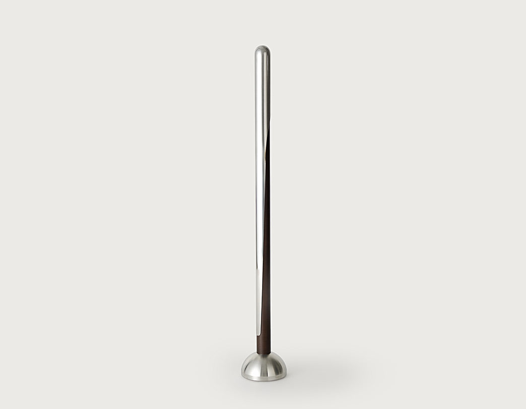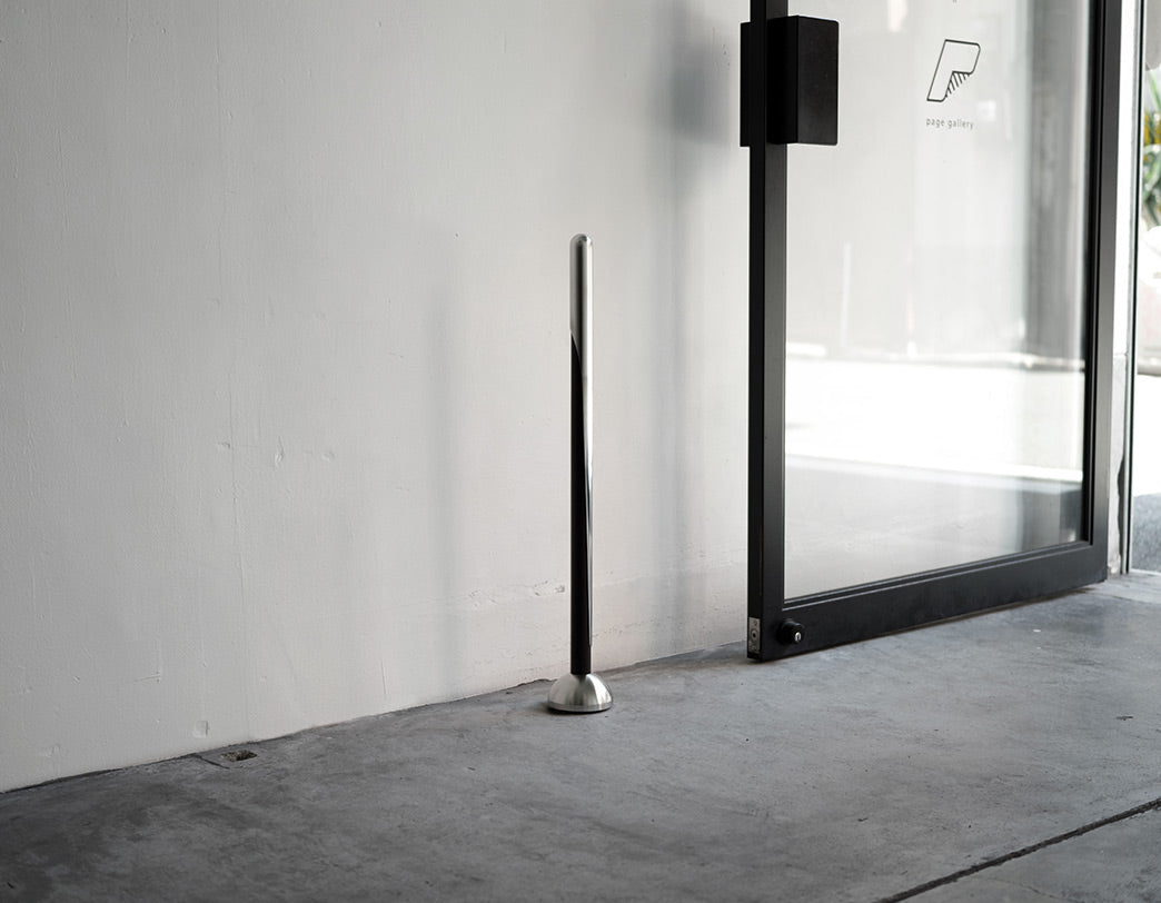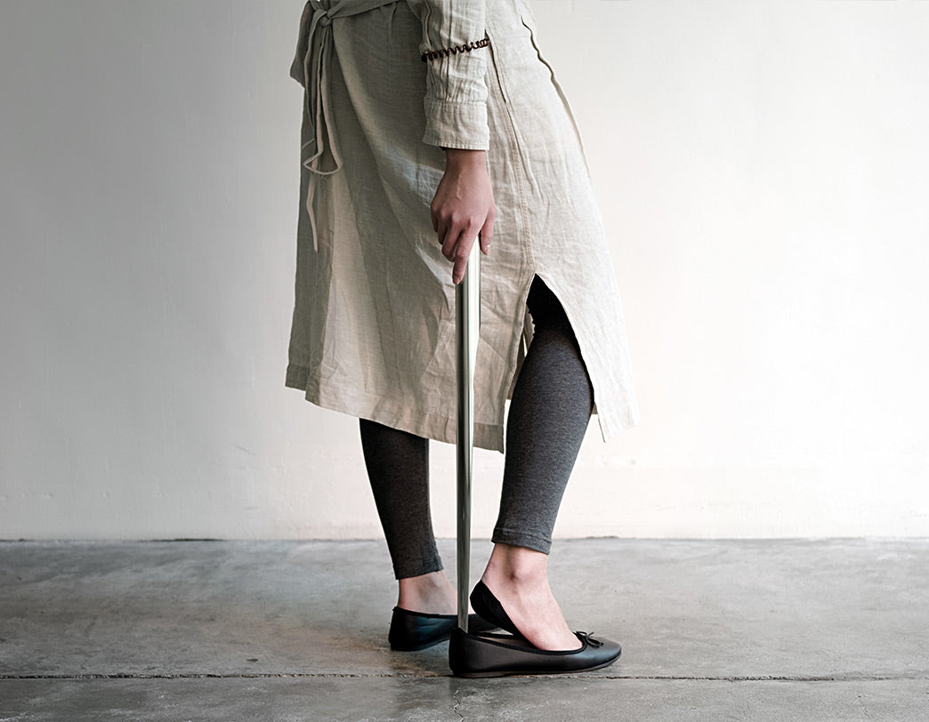 This shoehorn is designed to visually disappear, blending seamlessly with its surroundings. Using 3D laser cutting and welding, the shoehorn and stand appear as a single upright rod, creating a sleek, unprecedented style for entryways. Made of stainless steel, it is thinner and more durable than wood or leather, allowing easy use even with narrow-heeled shoes without deforming their shape.