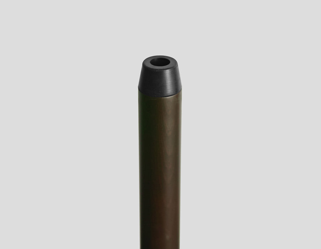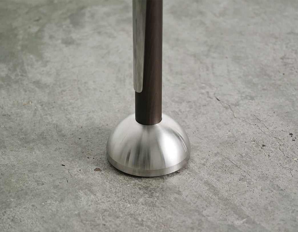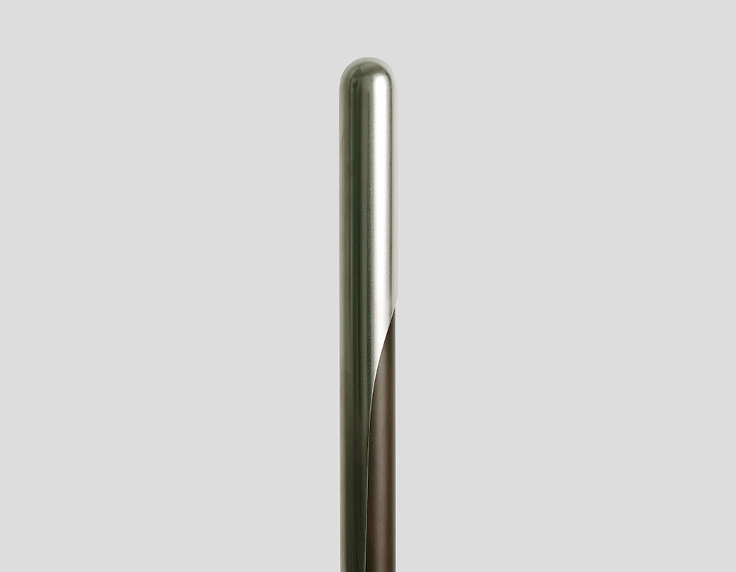 Its long design reduces bending, easing strain on the waist. The grip features a subtle blast finish to hide fingerprints, while the tip is polished to a mirror finish. Carefully finished to prevent socks or stockings from catching, the base is crafted from a solid stainless steel ingot for a low center of gravity, ensuring stability.