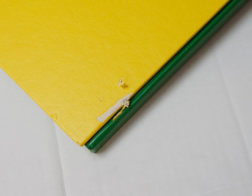Scratches are visible on the cover and Several stains are visible on the artwork inside.