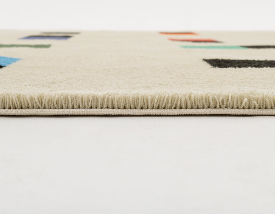 Based on Max Bill’s original 1946 graphic “colorful accents.,” this rug features perfectly matched colors approved by the Max Bill Foundation. Every dyed yarn sample was carefully checked and certified to ensure a true-to-original finish.