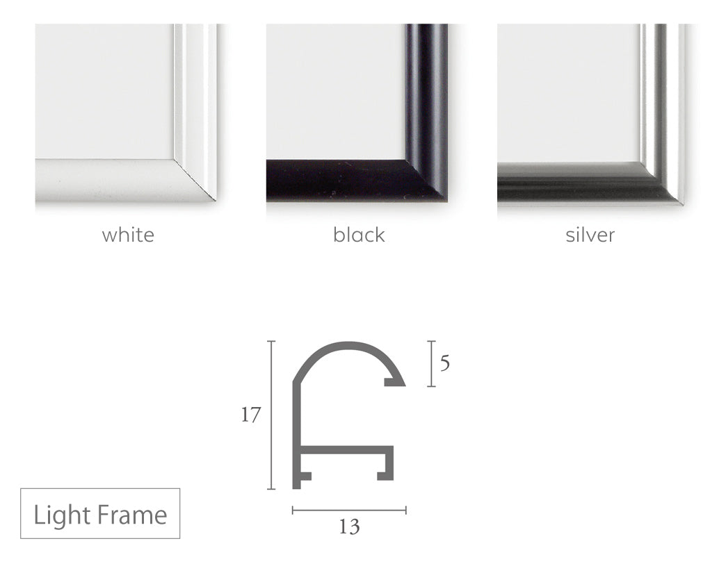 The Light Frame is a lightweight, minimalist aluminum frame with a sliding structure for easy artwork framing. Its one-lock system allows quick opening and closing.
