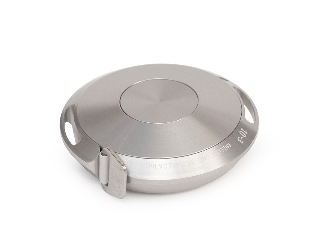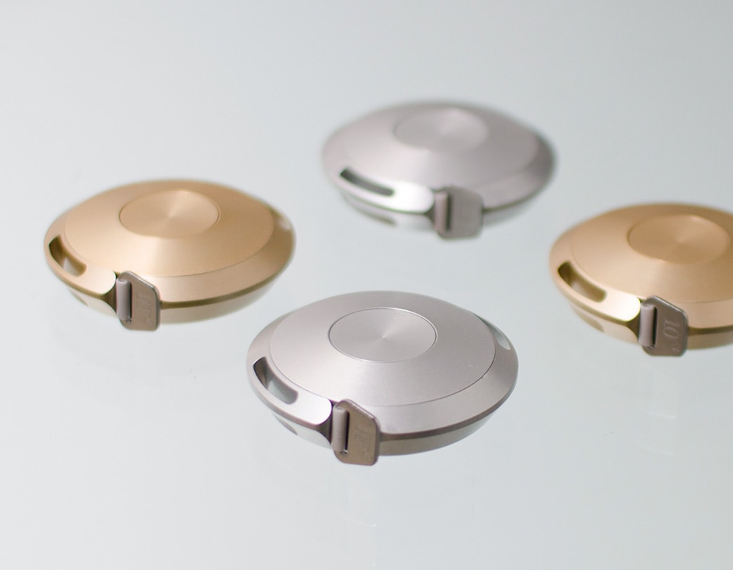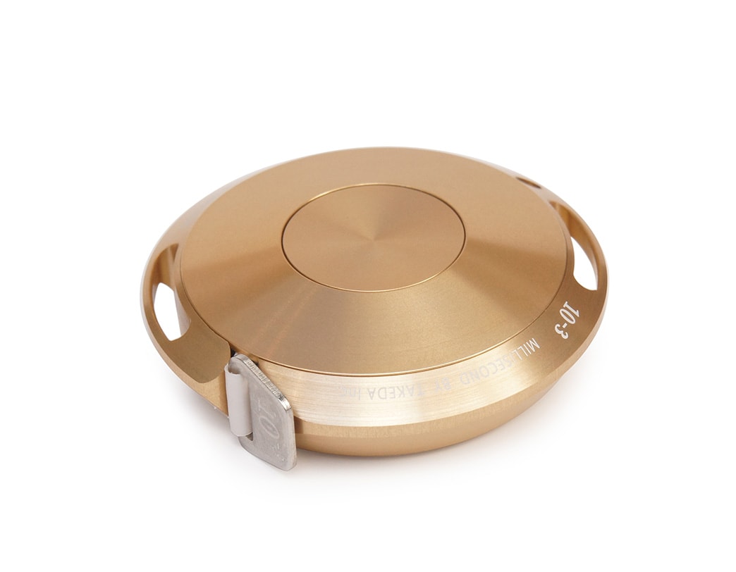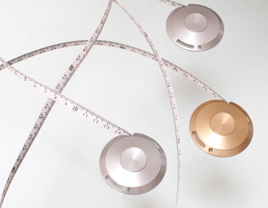 This measure is made by the world highest level of metal cutting technique. Its Φ 50 mm disc-type shape is curved out from the aluminum, and surfaces are slightly concave to fit the fingers. There are three holes on the edge that you can put on your favorite keychain, strap & etc. It has an antibacterial soft textured tape made of glass fiber, and a stop button is attached.
