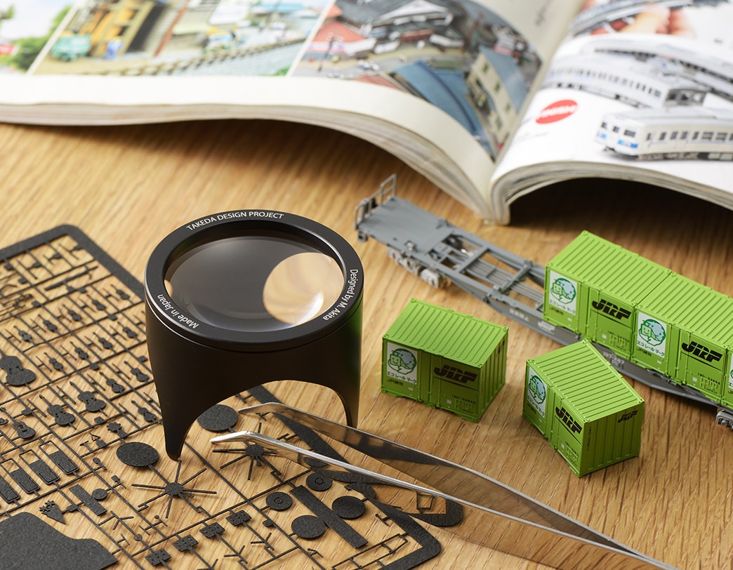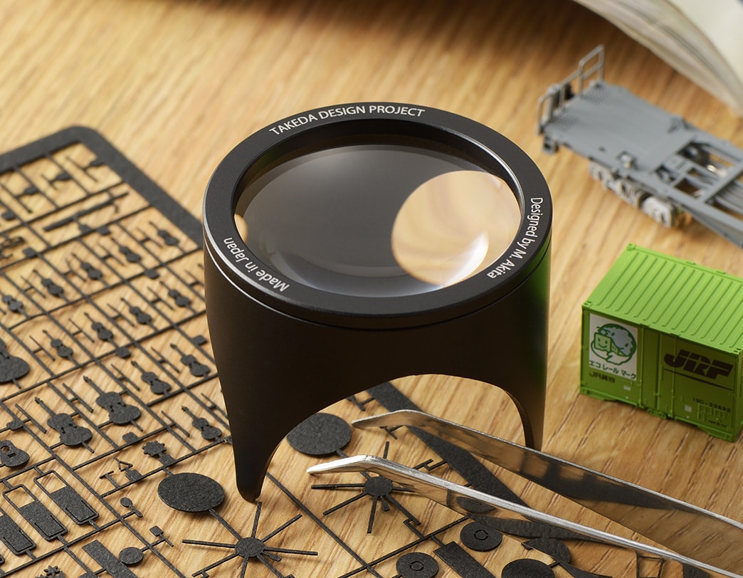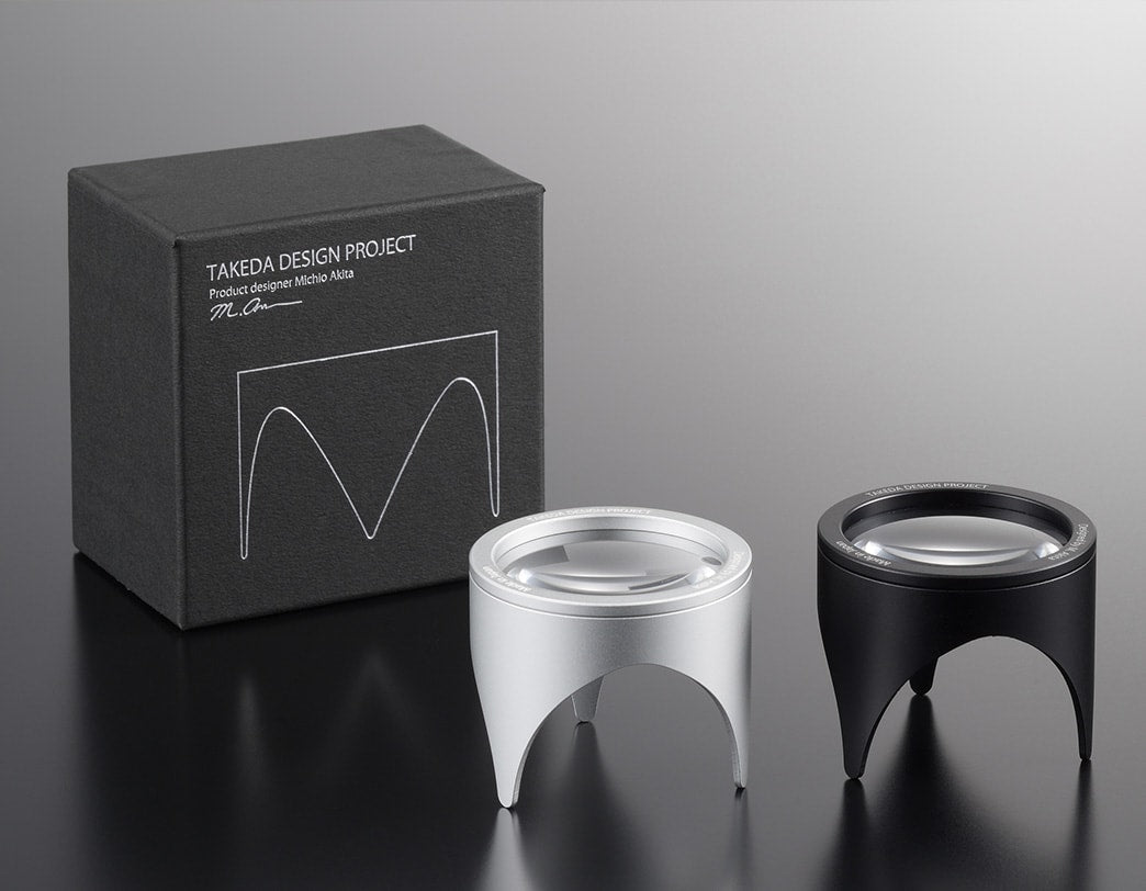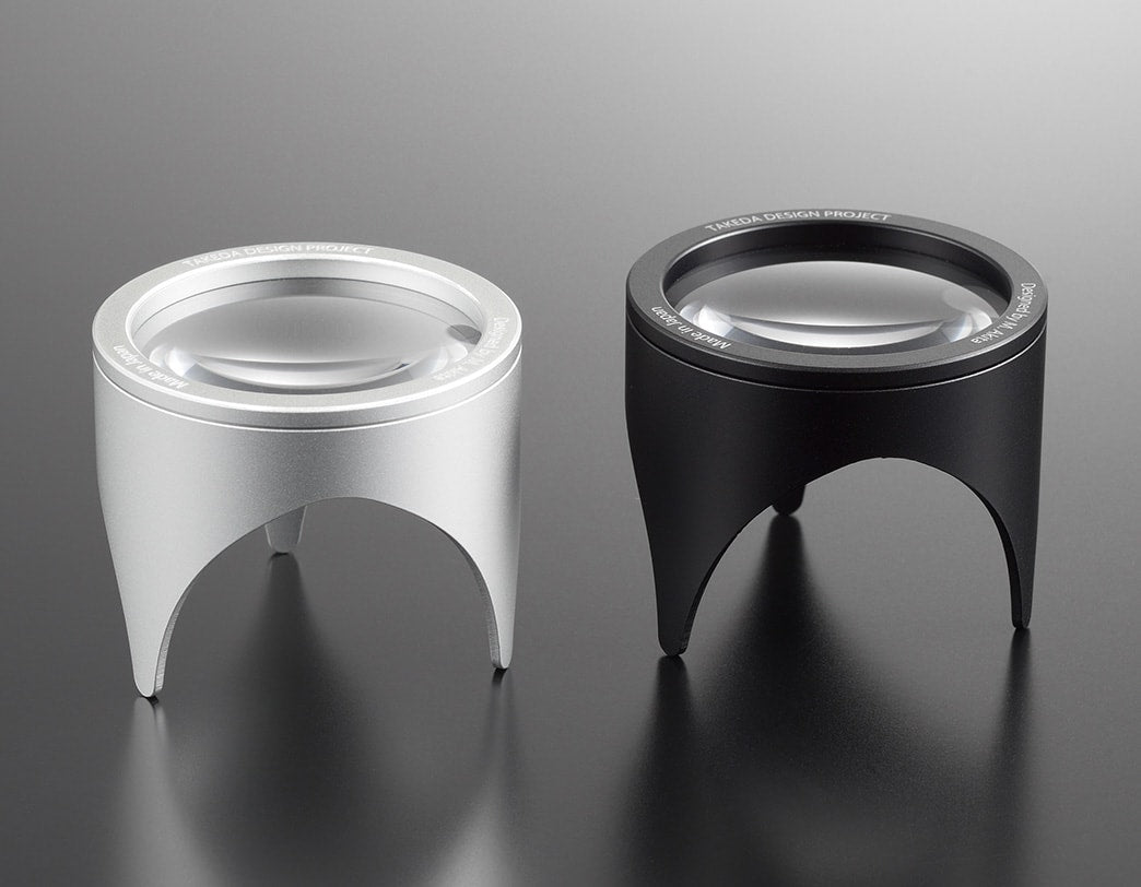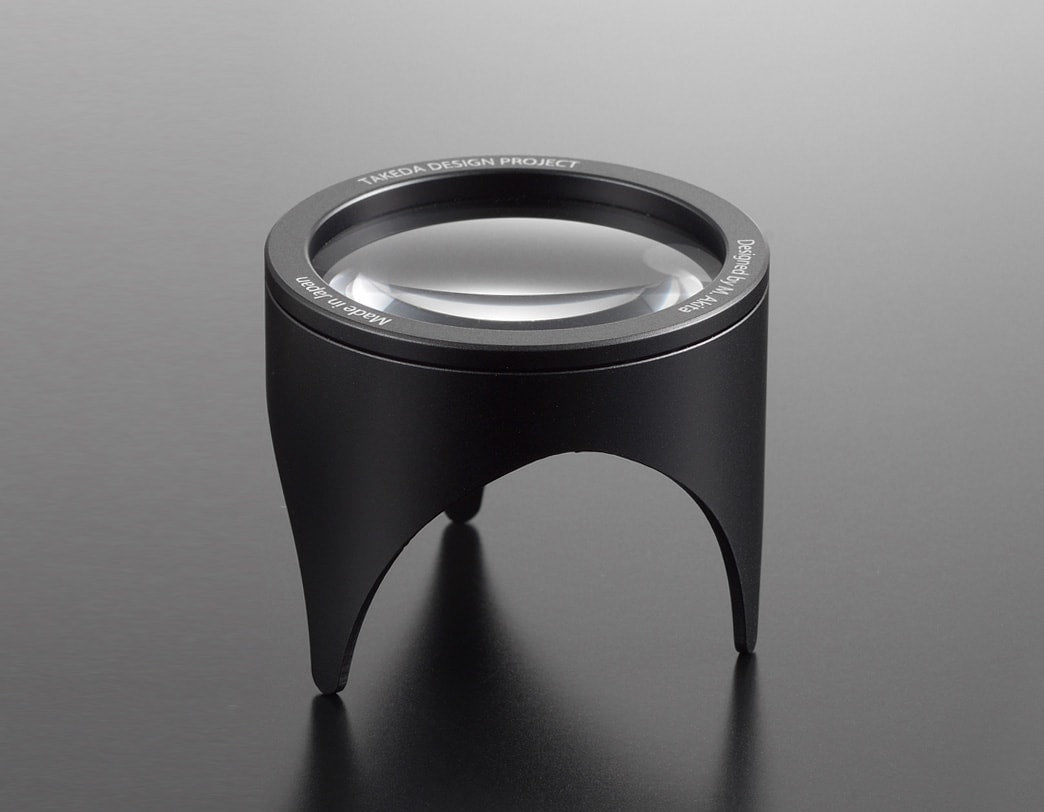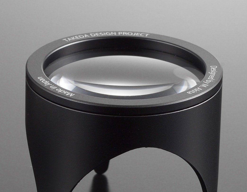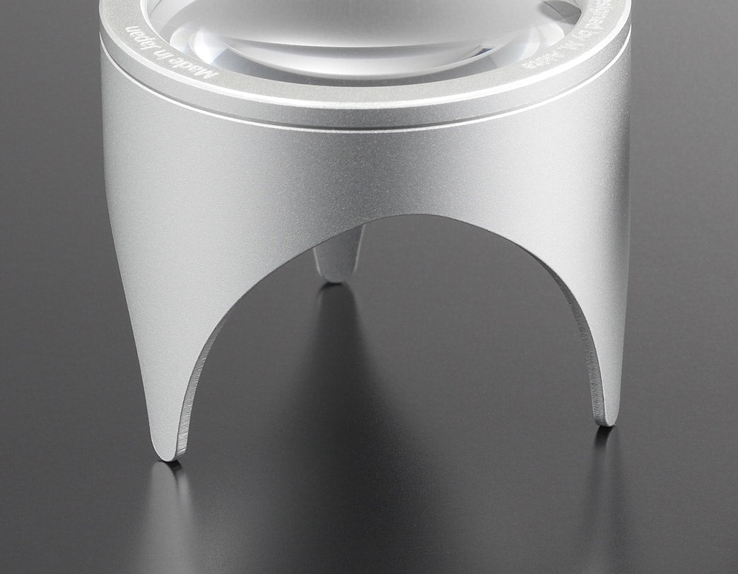 Designed by product designer Michio Akita for the Primario series, this loupe is crafted from solid aluminum for lightweight strength. Its beautifully arched form captures maximum light and stands on three points for stability on uneven surfaces - perfect for newspapers, maps, or dictionaries. The open arch also allows precise work with tools like tweezers.