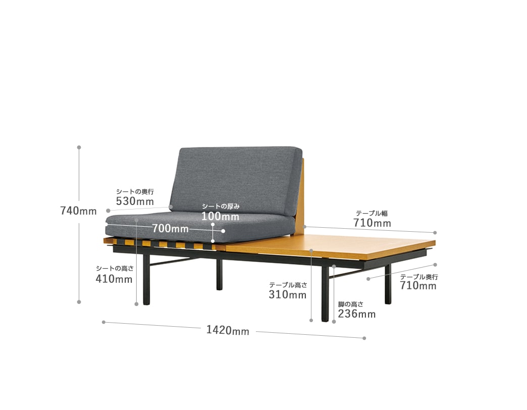 W 1420 × D 730 × H 740mm Seat height 410 mm