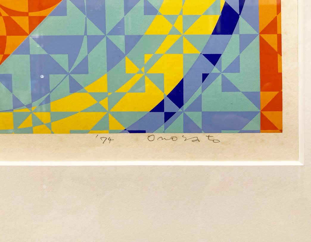 This is an artworkby Toshinobu Onosato, one of the pioneers of abstract painting in Japan. In each of his various geometric works, we can see the presence of a large "circle" spreading out from the quadrangle on the screen. This can be seen as a consistent rule in his works.